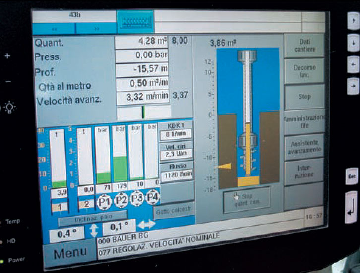 Podczas wiercenia komputer wiertnicy rejestruje na bieżąco podstawowe parametry z procesu wykonywania pala tj. czas wiercenia i betonowania pala, moment obrotowy świdra, prędkość pogrążania świdra, jego zagłębienie oraz liczbę obrotów na minutę a także ciśnienie oraz ilość podawanego betonu. Powyższy monitoring umożliwia stałą kontrolę jakości wykonywanego pala oraz zgodności warunków gruntowych z założonymi w projekcie palowania.